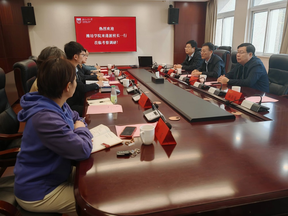 本网讯 10月24日,学校党委副书记、校长来逢波,党委委员、副校长王成端带队赴南京工业大学、南京工程学院调研交流。