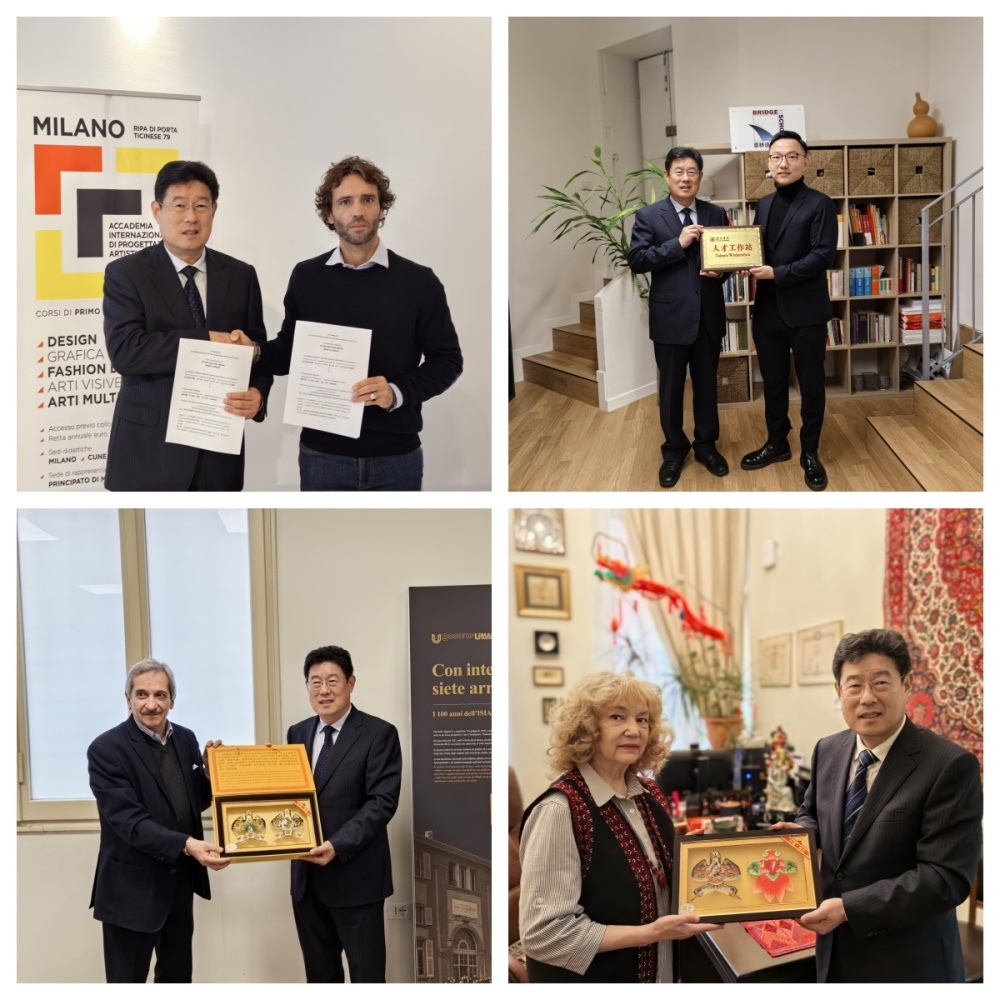 在意大利期间,王守全一行访问了库内奥美术学院米兰分校,会见校长阿尔贝托·马蒂尼。双方就美术专业师生交流、硕士培养等项目展开深入讨论,并签署两校合作交流协议。在意大利海外留学生求职社区,王守全会见创始人侯跃男并商讨“suncitygroup太阳官方网站—意大利海外实习实训基地”建设方案,就长短期学生交流项目、特色暑期项目和实习项目达成共识。在意桥语言中心,代表团与中心负责人进行座谈,王守全为“suncitygroup太阳官方网站人才工作站”揭牌。在洛里亚大学,王守全会见了校长丹尼尔·伽罗,双方就两校建立友好合作关系并在经济、管理等相关专业开展教师交流、学生交流、联合培养硕士研究生等事宜进行探讨并达成初步合作意向。在卢姆大学,王守全会见校方负责人克里斯蒂亚诺,双方就在经济、管理等相关领域开展合作交流交换意见。