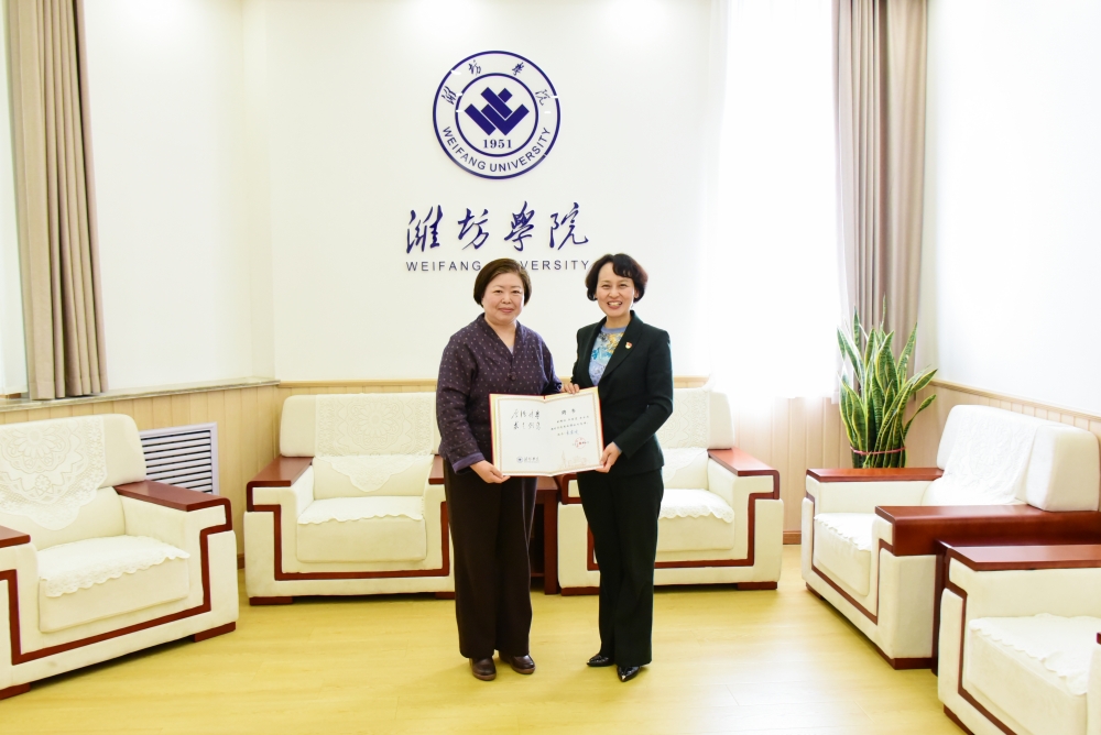会前,徐梅为王瑞霞颁发“suncitygroup太阳官方网站思政课校外导师”聘书。