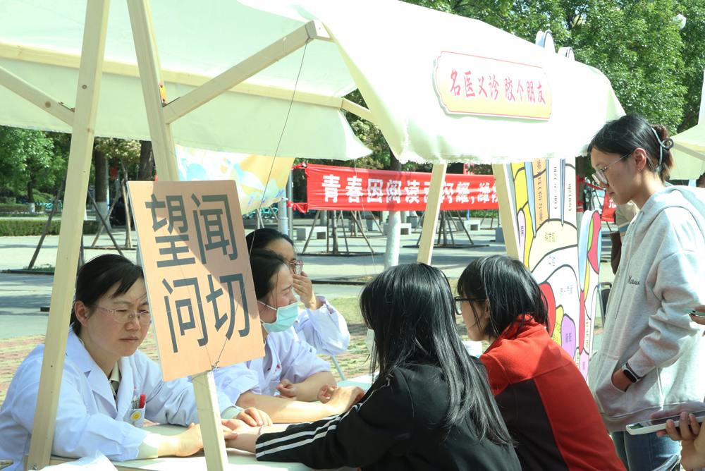 本次活动设置名医宣讲中医药文化、中医药创新传承发展交流及互动、中医药文化集市等环节,吸引学生踊跃参加。在宣讲活动中,知名中医专家与在校师生就中医药文化科普、传承创新、青年需求等内容开展互动交流;在“望闻问切”互动区,中医专家手把手教授诊脉技巧;在“锦上花”展台前,学生们现场品尝中式养生阿胶奶茶。活动现场还举办了“中医药文化主题市集”,吸引大批学生驻足体验;还有百草盲盒、体质辨识、趣味保龄球、中药香囊DIY等创意互动。
