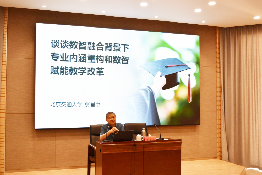 报告会上,张星臣教授从数智融合对专业发展的影响谈起,全面阐述了教学思想的变迁、专业内涵重构以及课堂教学改革的推进措施,并结合交通运输类新工科建设进行了细致说明。