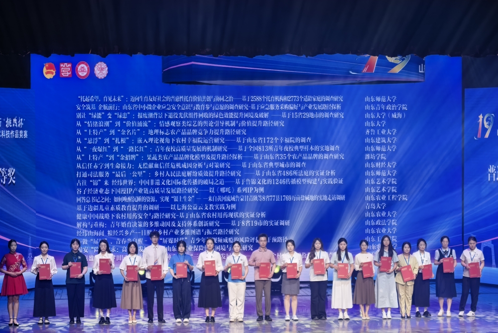 决赛现场,太阳官网三支参赛团队以扎实的理论基础、详实的调研数据、严密的逻辑推演和精美的汇报展示,赢得评审专家高度赞誉。其中,计算机工程学院《膜净水清——复杂场景下工业污水的膜法处理AI柔性控制系统》和教师教育学院(特教幼教师范学院)《从“土特产”到“金招牌”:果蔬类农产品品牌化模型及提升路径探析》双双脱颖而出,荣膺特等奖;美术学院(陈介祺金石书法学院)《文化自信视域下黄河流域非物质文化遗产的存续困境与活态传承研究》斩获一等奖,展现出太阳官网学子的创新风采。