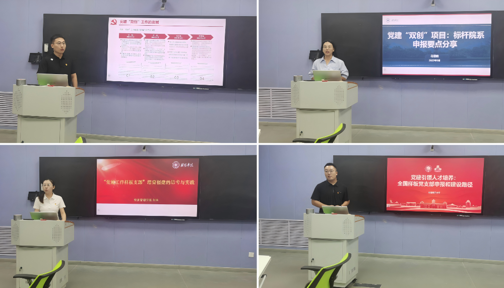 活动中,机械与自动化学院于振山围绕党建“双创”工作政策解读与背景分析等方面内容、物理与电子信息学院马雪晓围绕“标杆院系”申报要点解析等方面内容、经济管理学院刘佳围绕“样板支部”申报实务指导等方面内容、文史学院辛世昌围绕相关高校党建“双创”项目优秀案例与融合经验等方面内容分别进行分享,为正在培育创建和计划申报的单位提供了清晰的思路和可借鉴的范例。分享结束后,与会人员重点围绕当前党建“双创”项目申报工作的重点、难点和关键环节展开了深入研讨,交流了本单位在项目培育、申报书撰写、特色凝练、品牌打造等方面的实践与思考。