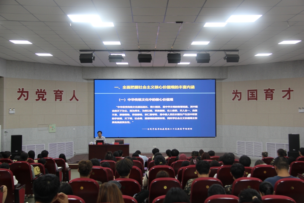 韩冰从深刻把握社会主义核心价值观的丰富内涵、充分认识培育和践行社会主义核心价值观的重大意义、积极培育和自觉践行社会主义核心价值观三个维度深刻剖析了社会主义核心价值观的丰富内涵、重大意义和实践要求。讲座深入浅出,既有理论高度,又有实践深度,受到与会师生好评。
